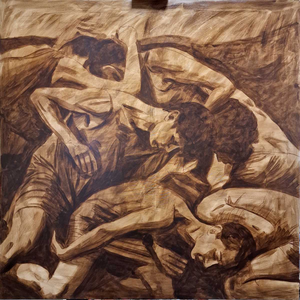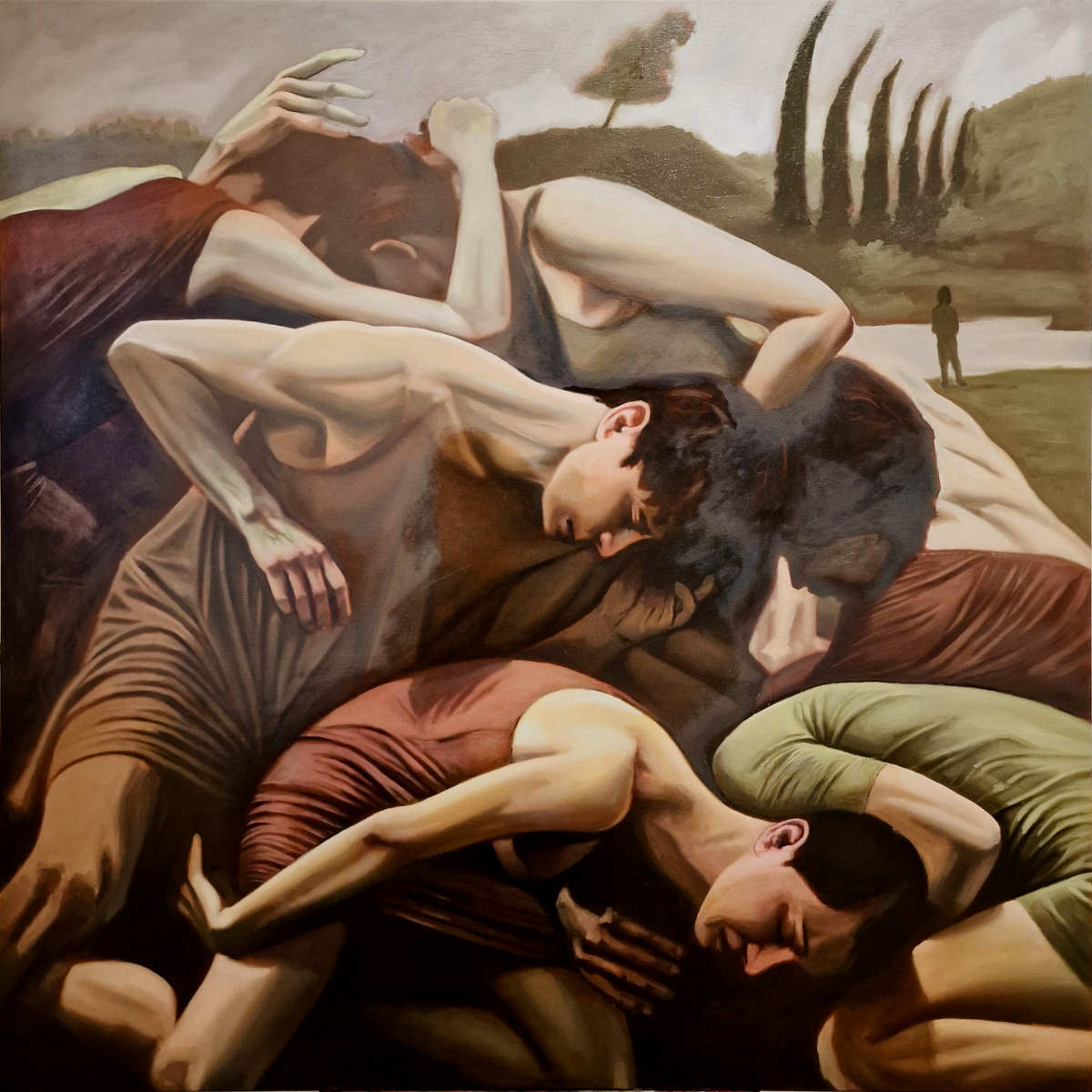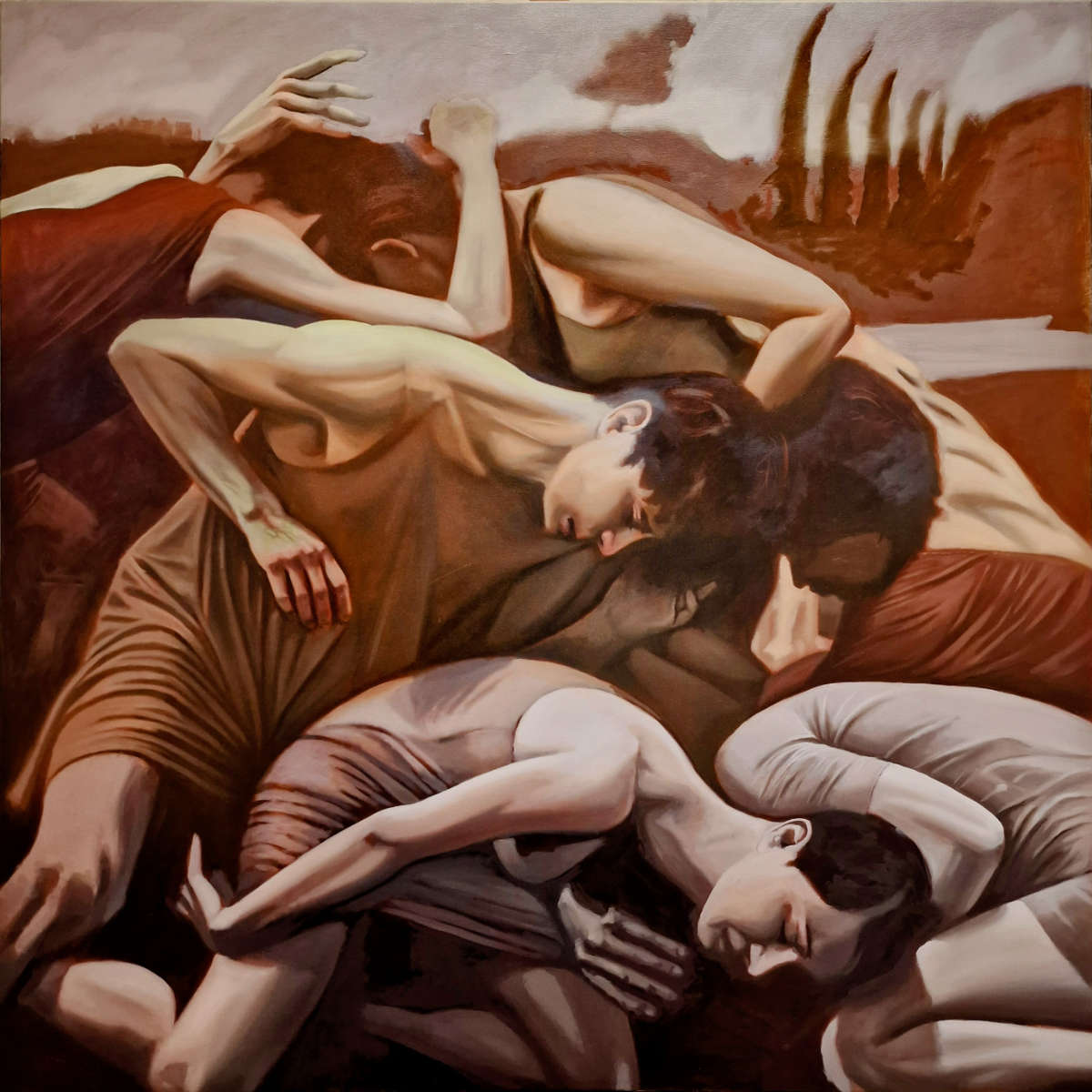 At first glance, The Socialites appears as a tableau of intimacy—a knot of limbs, exposed skin, and overlapping forms. But look closer, and the embrace reveals itself not as an act of affection, but as a struggle for position.